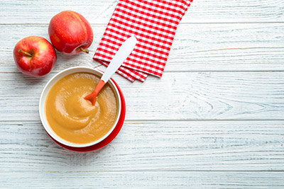 - اسكبي نصف كوب من الماء في قدر، واطهي التفاحة على البخار لحوالى ١٠ دقائق أو إلى أن تصبح لينة وطرية.